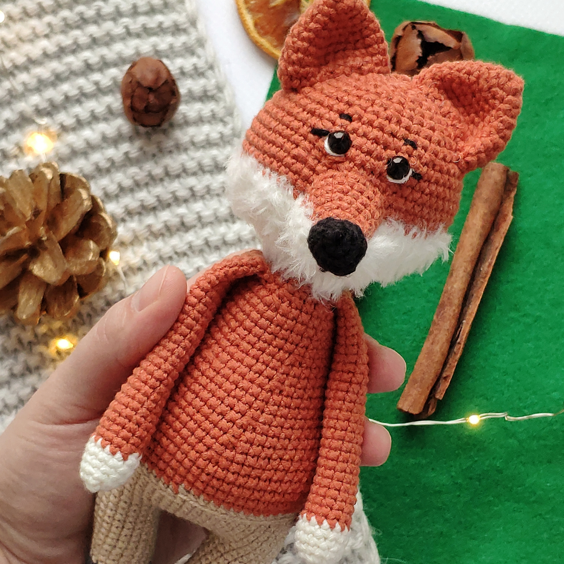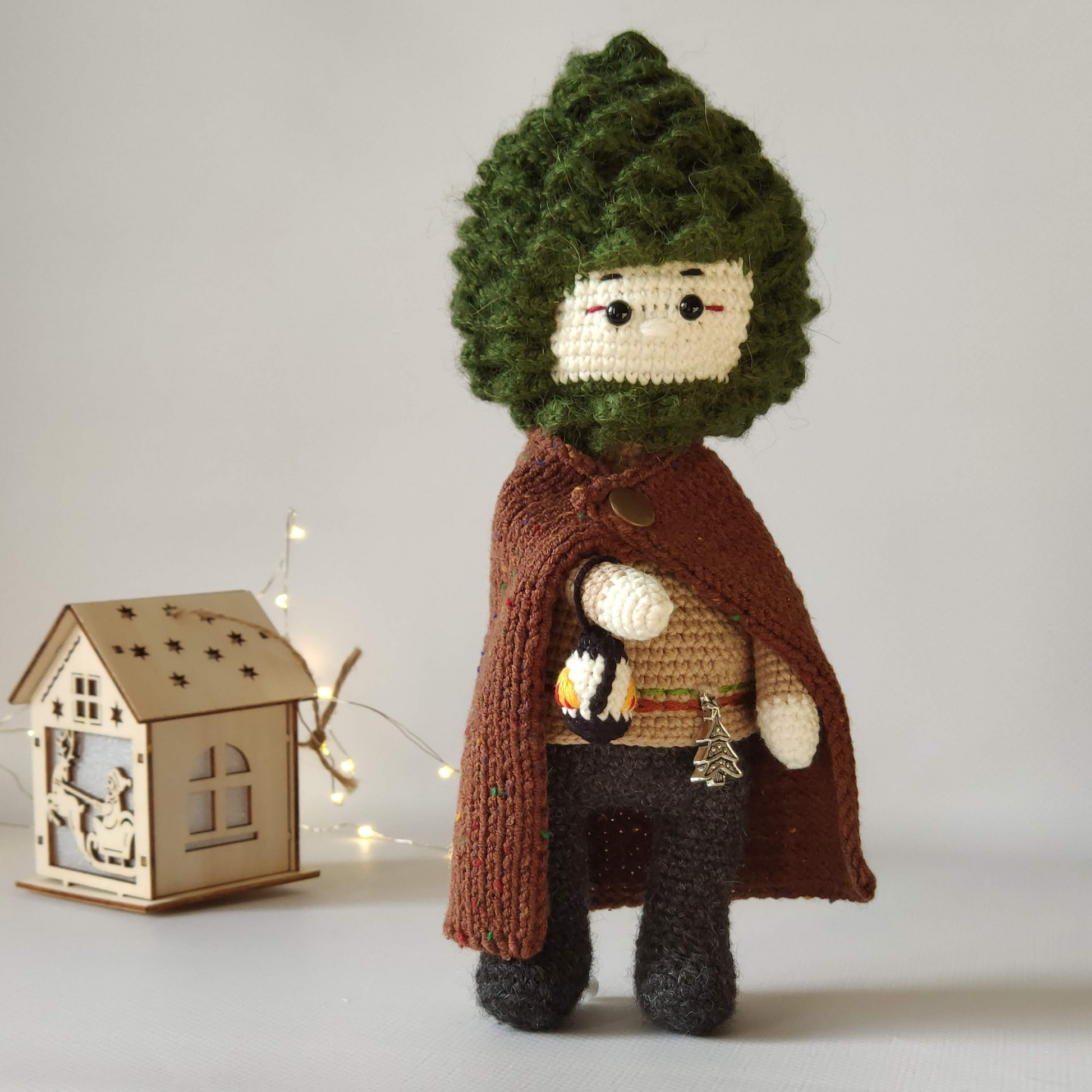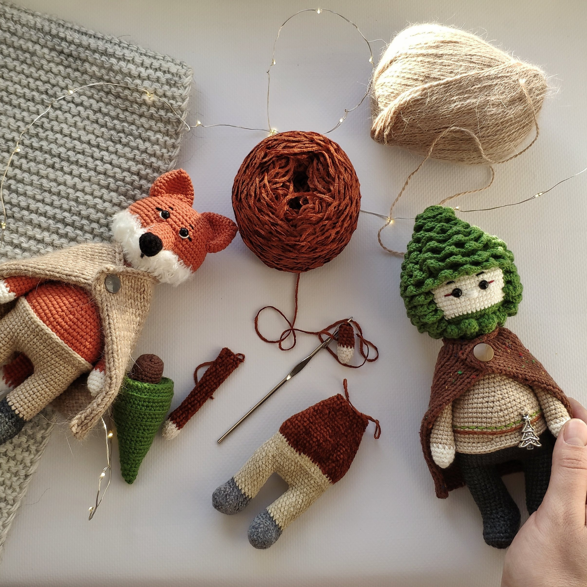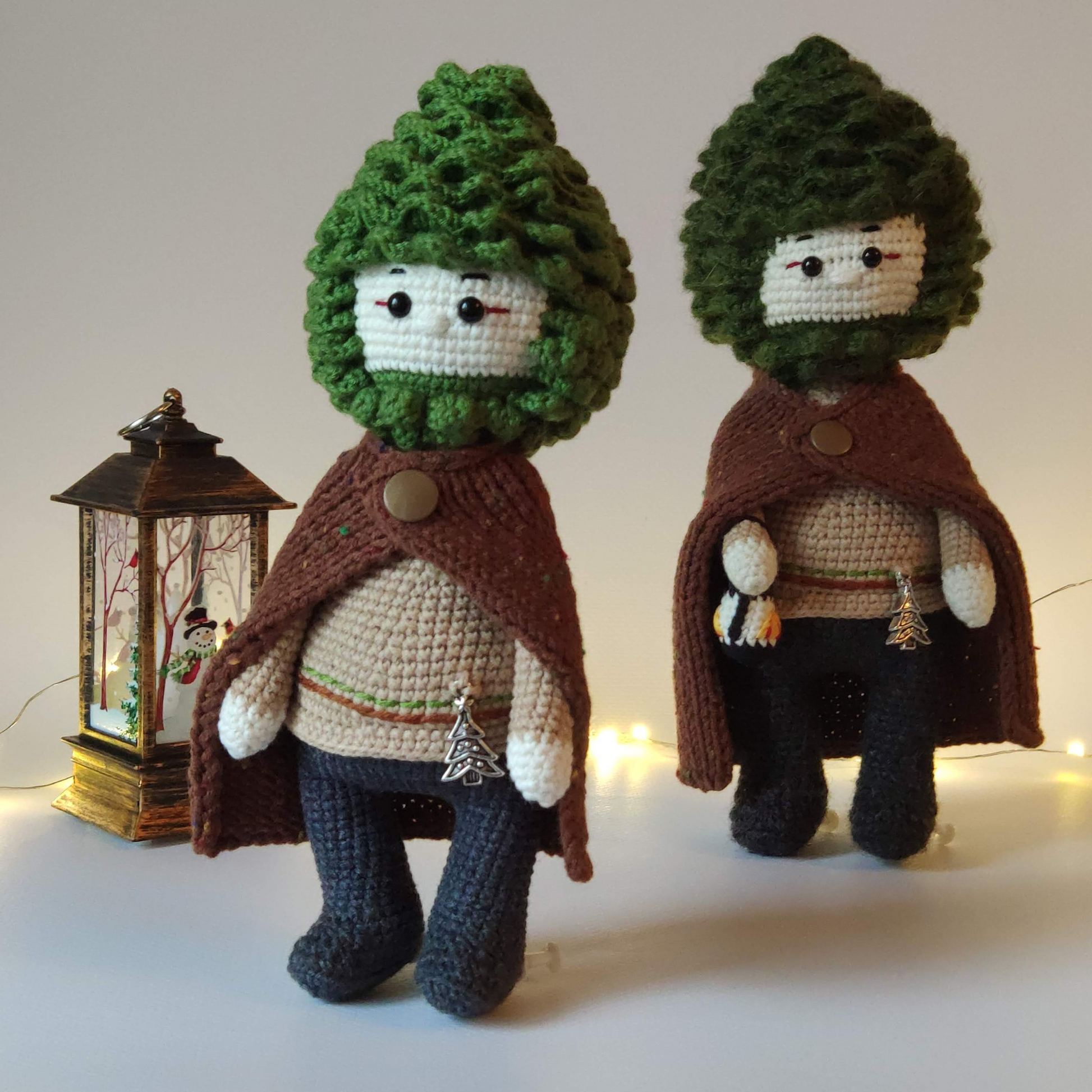 This is pdf crochet pattern 2in1. You can crochet two heroes from one pattern: Baby Elfo (pine cone doll) and Fox Marcel.